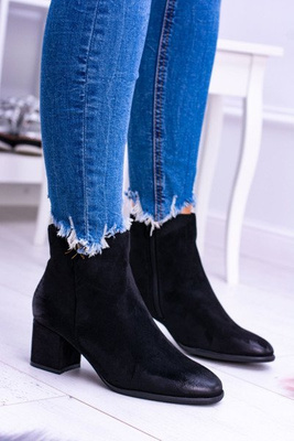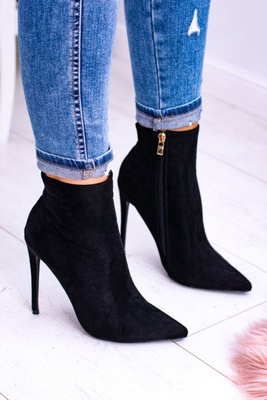 Damskie Czarne Botki Na Słupku Zamsz Ferimate