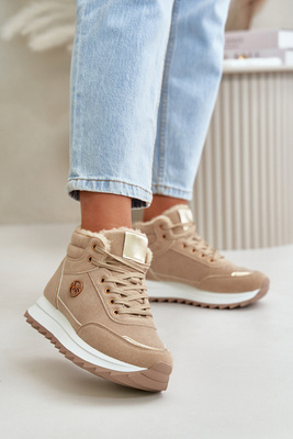 Ocieplane Botki Trapery Na Grubej Podeszwie Jasnobeżowe Ralotta