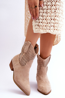 Zamszowe Ażurowe Botki Na Płaskim Obcasie Beżowe Angie