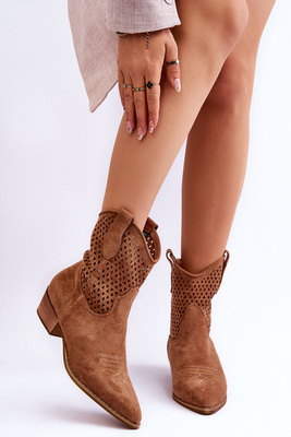 Zamszowe Ażurowe Botki Na Płaskim Obcasie Ciemnobeżowe Angie