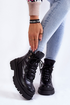 Damskie Botki Workery Sznurowane Czarne Marlissa