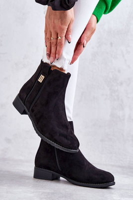 Zamszowe Damskie Ocieplane Botki Na Suwak Czarne Emilien