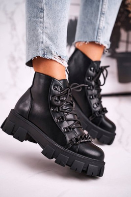 Botki Damskie Workery Ze Skarpetą Sznurowane Czarne My Need