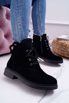 Damskie Botki Workery Big Star Skórzane Czarne EE274508
