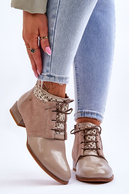 Skórzane Sznurowane Botki Maciejka 05953-04 Beżowe