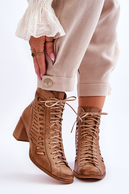 Skórzane Ażurowe Botki Maciejka 05508-10 Ciemnobeżowe
