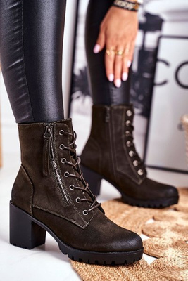 Botki Damskie Na Słupku Ocieplane Khaki Vimen