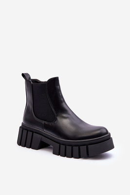 Damskie Botki Workery Na Platformie Czarne Aliana
