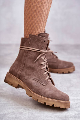 Zamszowe Ażurowe Botki Lewski Shoes 3165 Camel