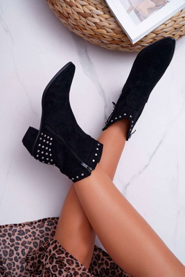 Botki Damskie Na Słupku Zamszowe Czarne Westema