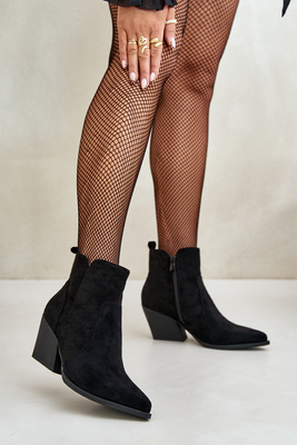 Ocieplane Botki Kowbojki Eko Zamszowe Na Zamek Czarne Virtris