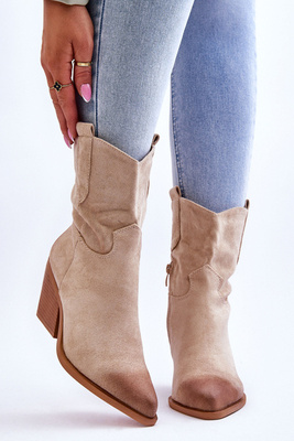 Damskie Zamszowe Botki Kowbojki Beżowe Dennise