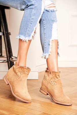 Botki Damskie Płaski Obcas Zamszowe Ażurowe Beżowe Shades
