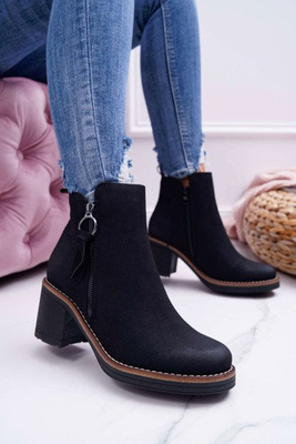 Botki Damskie Na Obcasie Suwak Zamszowe Czarne Farre