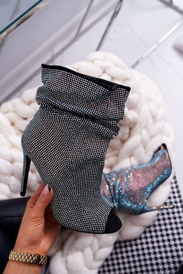Botki Na Szpilce Z Cyrkoniami Lu Boo Czarne