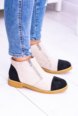 Lu Boo Zamszowe Beżowe Botki Z Suwakami Inez
