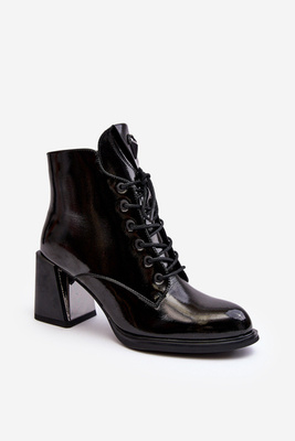 Lakierowane Ocieplane Botki Sznurowane Czarne Bjorg