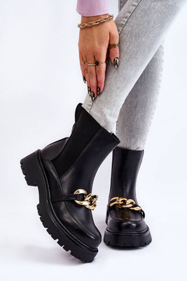 Damskie Wsuwane Botki Z Łańcuchem Czarne Maliya