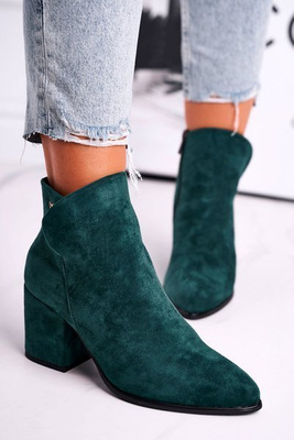 Botki Damskie Płaski Obcas Na Suwak Zielone Popsi