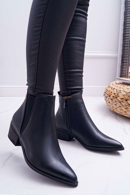 Botki Damskie Skórzane W Szpic Z Suwakiem Czarne Sonoma