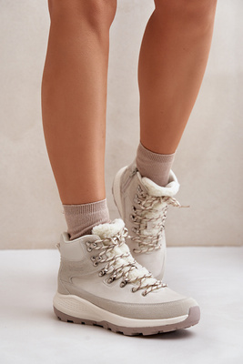 Damskie Ocieplane Botki Trapery Na Platformie Beżowe Alcyhen