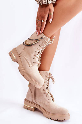 Zamszowe Ocieplane Botki Z Łańcuchem Beżowe Sorita