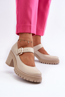 Lakierowane Czółenka Na Klocku Beżowe S.Barski MR38-960