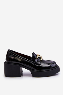 Modne Błyszczące Czółenka Na Niskim Obcasie Czarne Leilany