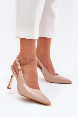 Lakierowane Szpilki Z Odkrytą Piętą I Szpiczastymi Noskami Beżowe Rivori