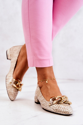 Skórzane Czółenka Na Niskim Obcasie Beżowe Giovanna
