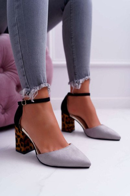 Czółenka Damskie Na Słupku Panterki Szare Ferri