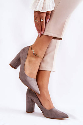 Zamszowe Czółenka Na Platformie Szare Gottie