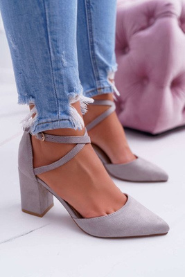 Czółenka Damskie Na Słupku W Szpic Szary Cosmo