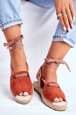 Espadryle Damskie Na Platformie Wiązane Pomarańczowe Fuerta