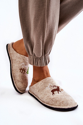 Futrzane Kapcie Damskie Z Motywem Renifera Beżowe Wistira