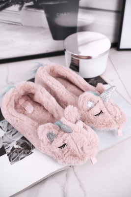 Papcie Damskie Futrzane Jednorożce Różowe Rainbow