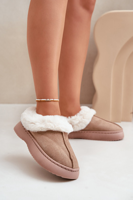 Kapcie Na Grubej Podeszwie Z Eko Zamszu Beżowe Sylva