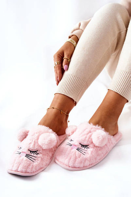 Welurowe Papcie Z Kotem Ciemnoróżowe Good Morning