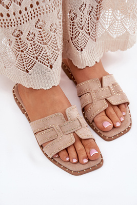 Zamszowe Klapki Damskie Inblu TF0002KU Beżowe