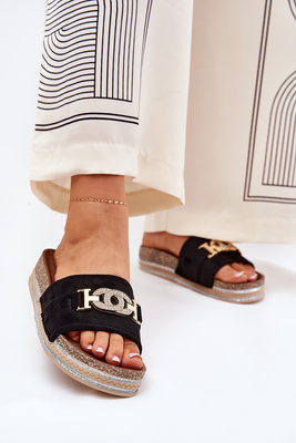 Klapki Damskie Na Platformie Ze Złotym Detalem Czarne Ularinea