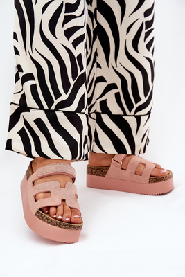 Klapki Damskie Z Kwiatkami Na Korkowej Platformie Różowe Zinrosa