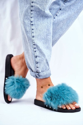 Klapki Damskie Z Futerkiem Jasny Róż Fur