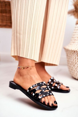 Damskie Klapki Czarne Gumowe Ćwieki Patty