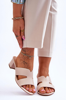 Klasyczne Skórzane Klapki Na Niskim Obcasie Beżowe Miley