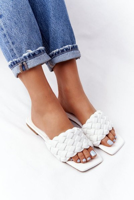 Damskie Plecione Klapki Białe Cheryl