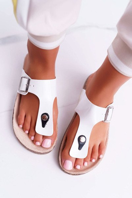 Klapki Damskie Japonki Na Korku Lakierowane Białe Palette