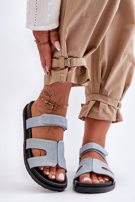 Damskie Materiałowe Klapki Jasnoniebieskie Aversa
