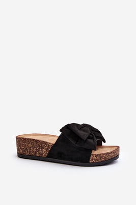 Damskie Klapki Na Korkowej Platformie Z Kokardą Czarne Tarena