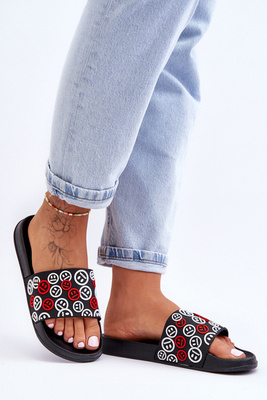 Damskie Klapki Z Emotikonami Czarne Cosette