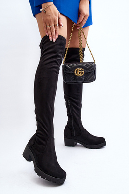 Damskie Kozaki Przed Kolano Na Grubej Podeszwie Czarne Beatrizia